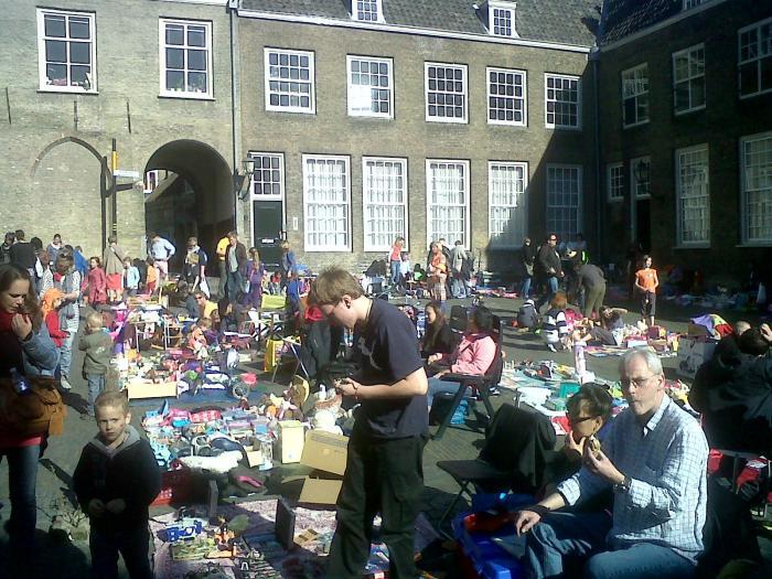 't Hof is op Koninginnedag traditiegetrouw het decor van een vrijmarkt.
