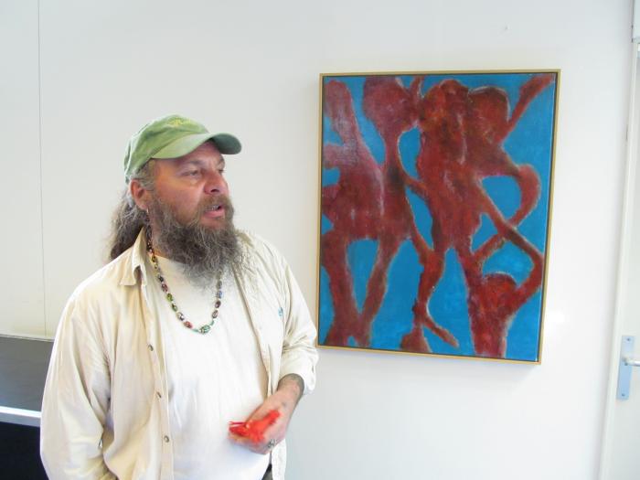 Een herinnering aan de tijd als trambestuurder inspireerde Ralf tot het maken van dit schilderij: De Zoen