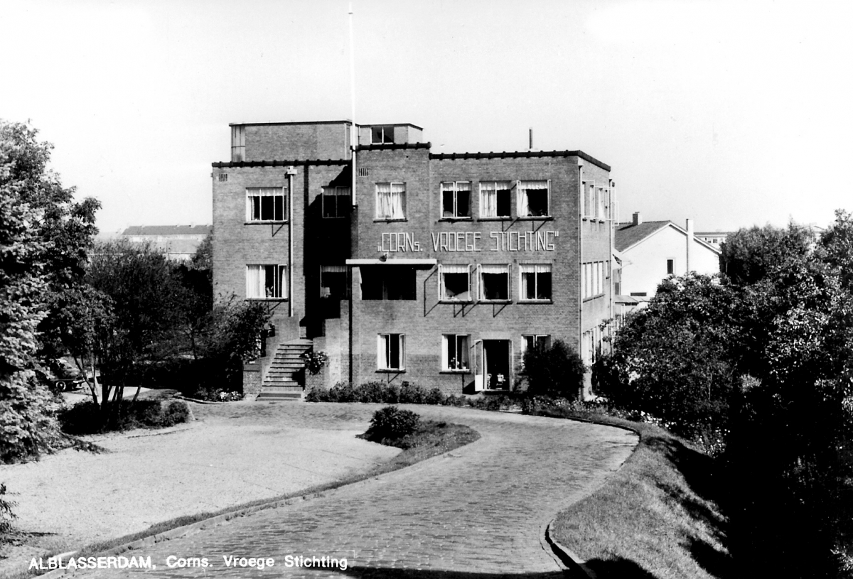 Corns. Vroege Stichting. In de dertiger jaren was dit een ortopedische kliniek, plus een ongevallenafdeling. Op zaterdagochtend was hier het badhuis. De kliniek was bekend tot in Amerika. Directeur was Dr van Nes.