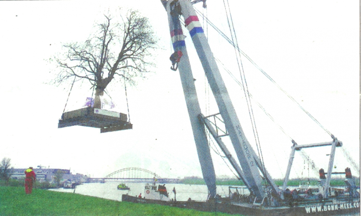 Aan het verplanten va de boom zaten grote haken en ogen.